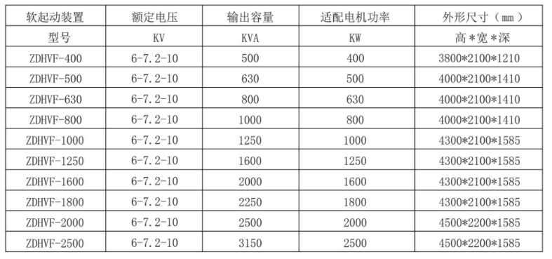 高壓變頻調(diào)速裝置外型尺寸選型表: